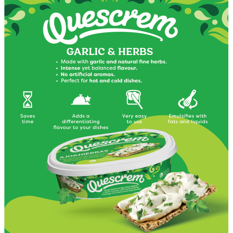 A premium Spanish dairy product known for its intense flavour, creamy texture, and high spreadability. Made with natural ingredients (milk, cream, garlic, parsley, white pepper), it is versatile for both cold and hot applications like snacks, sauces, fillings, and savoury pies.