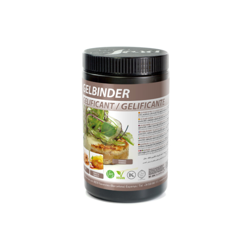 GELBINDER (formerly Gelburguer) is a heat-resistant, thermo-irreversible gelling and binding agent made from alginate and calcium that acts like an edible glue.