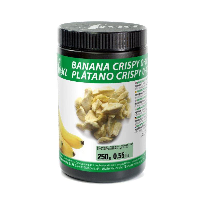 Freeze-dried banana pieces coated in cocoa butter, offering moisture resistance that keeps them crispy in wet applications.