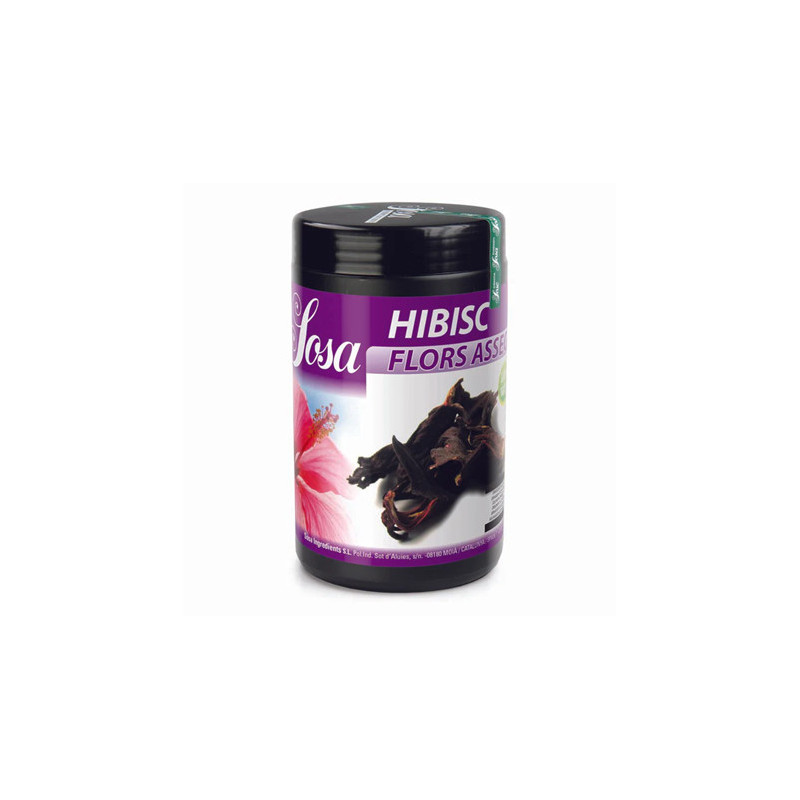 Natural dried hibiscus petals with a vibrant red color and tart, fruity, slightly tangy flavor, rich in Vitamin C, antioxidants, and minerals, used for flavoring and decoration in teas, desserts, macarons, and cocktails while preserving their natural shape and fragrance.