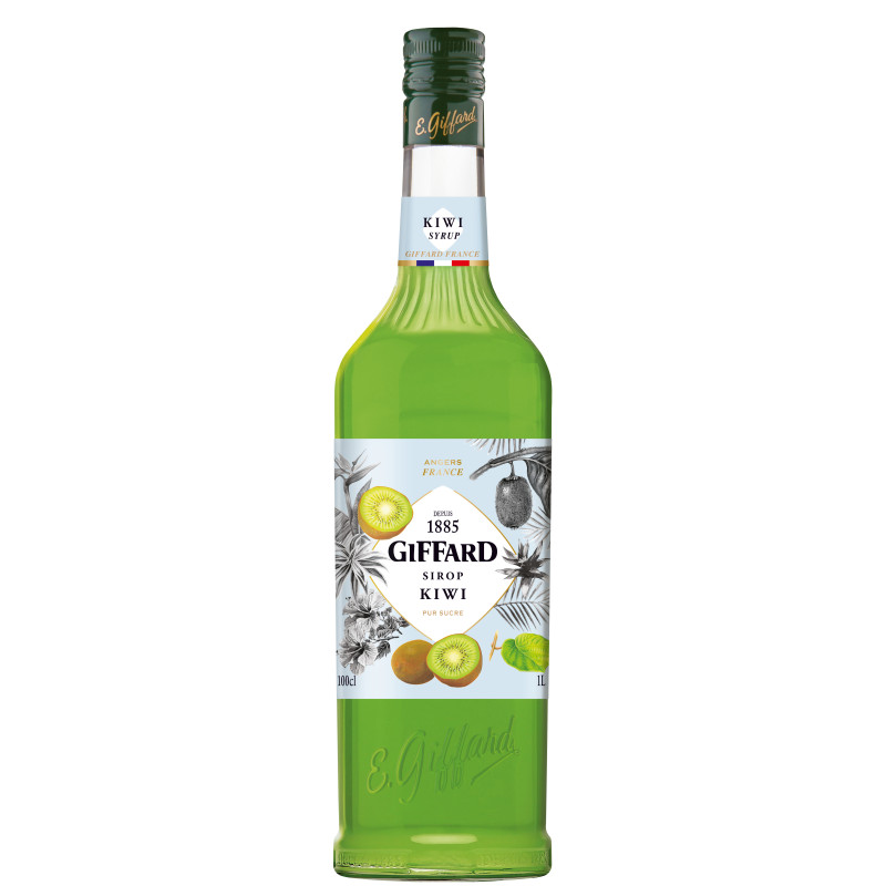 Giffard Kiwi Syrup is a pure sugar syrup made from concentrated kiwi juice, known for its acidulous (sweet and sour) flavor and vibrant green color. It contains no preservatives and is designed for use in a variety of non-alcoholic and alcoholic drinks.