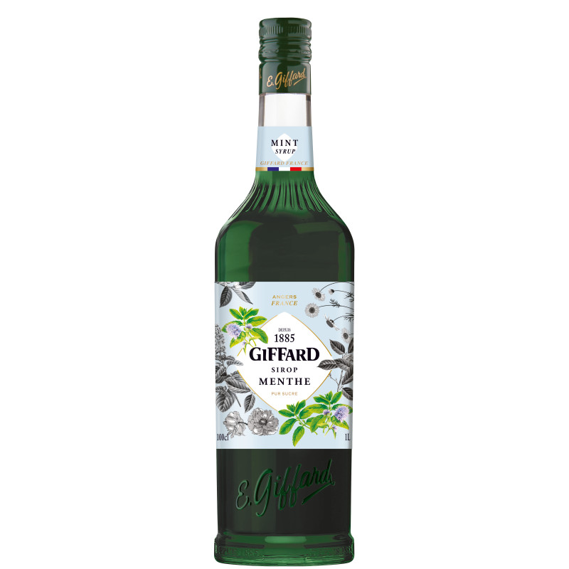 Giffard Mint syrup is a pure sugar syrup made from Mitcham mint essential oil and natural mint extracts, known for its vibrant emerald green color and refreshing, peppery mint flavor.