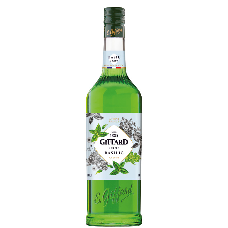 Giffard Basil syrup is a non-alcoholic, pure sugar syrup made in France, known for its intense, fresh basil flavor with notes of aniseed, pepper, and mint. It has a vibrant emerald green color and is versatile for both beverages and culinary applications. The syrup provides an intense and fresh note of freshly picked basil, enhanced by an aniseed finish and subtle peppery and minty notes.